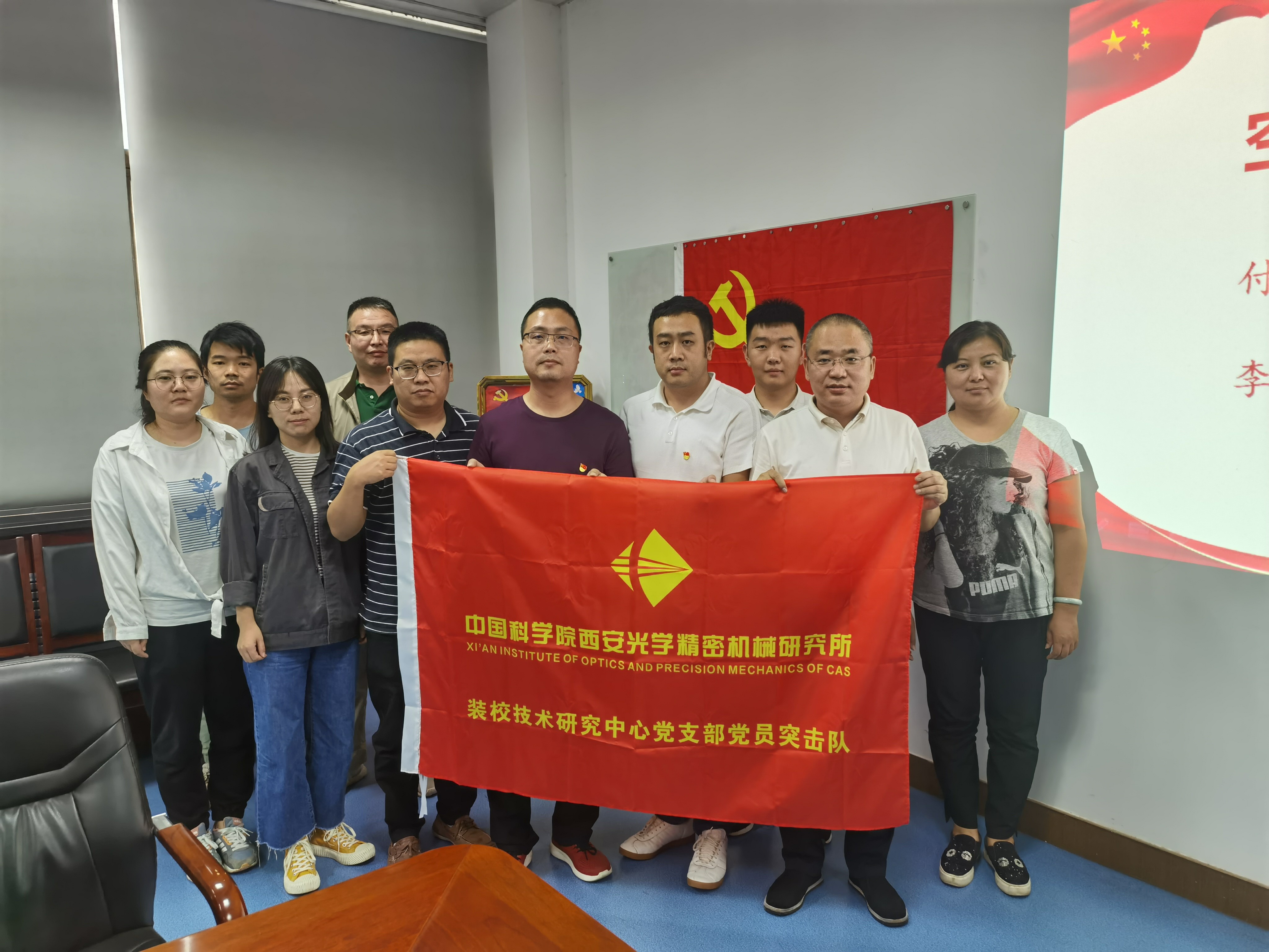 座談會后舉行了“黨員突擊隊”授旗儀式。王鋒、葛永嬌、楊洪濤、郭高、康世發(fā)等分別為空間光學(xué)裝配團隊、大口徑光學(xué)裝配團隊及精密機械裝配團隊授“黨員突擊隊”隊旗,并向廣大黨員同志發(fā)出號召:希望廣大黨員強化責(zé)任擔(dān)當(dāng),攻堅克難、吃苦奉獻,真正起到先鋒模范帶頭作用,團結(jié)帶領(lǐng)組內(nèi)職工群眾,努力保證科研生產(chǎn),以一絲不茍的態(tài)度對待產(chǎn)品,高質(zhì)量按期完成任務(wù)。把學(xué)習(xí)黨史同推動科研工作結(jié)合起來,把學(xué)習(xí)成效轉(zhuǎn)化為工作動力和成效。